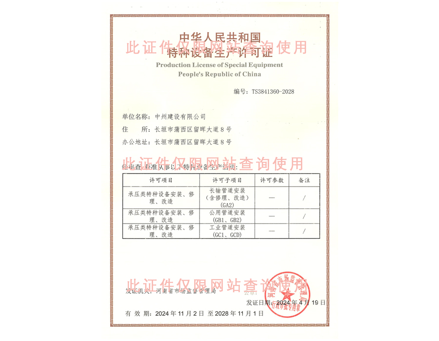 特種設(shè)備生產(chǎn)許可證