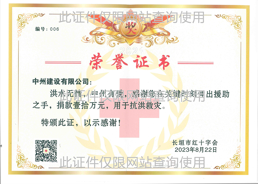 2023年長垣市紅十字會捐款榮譽證書